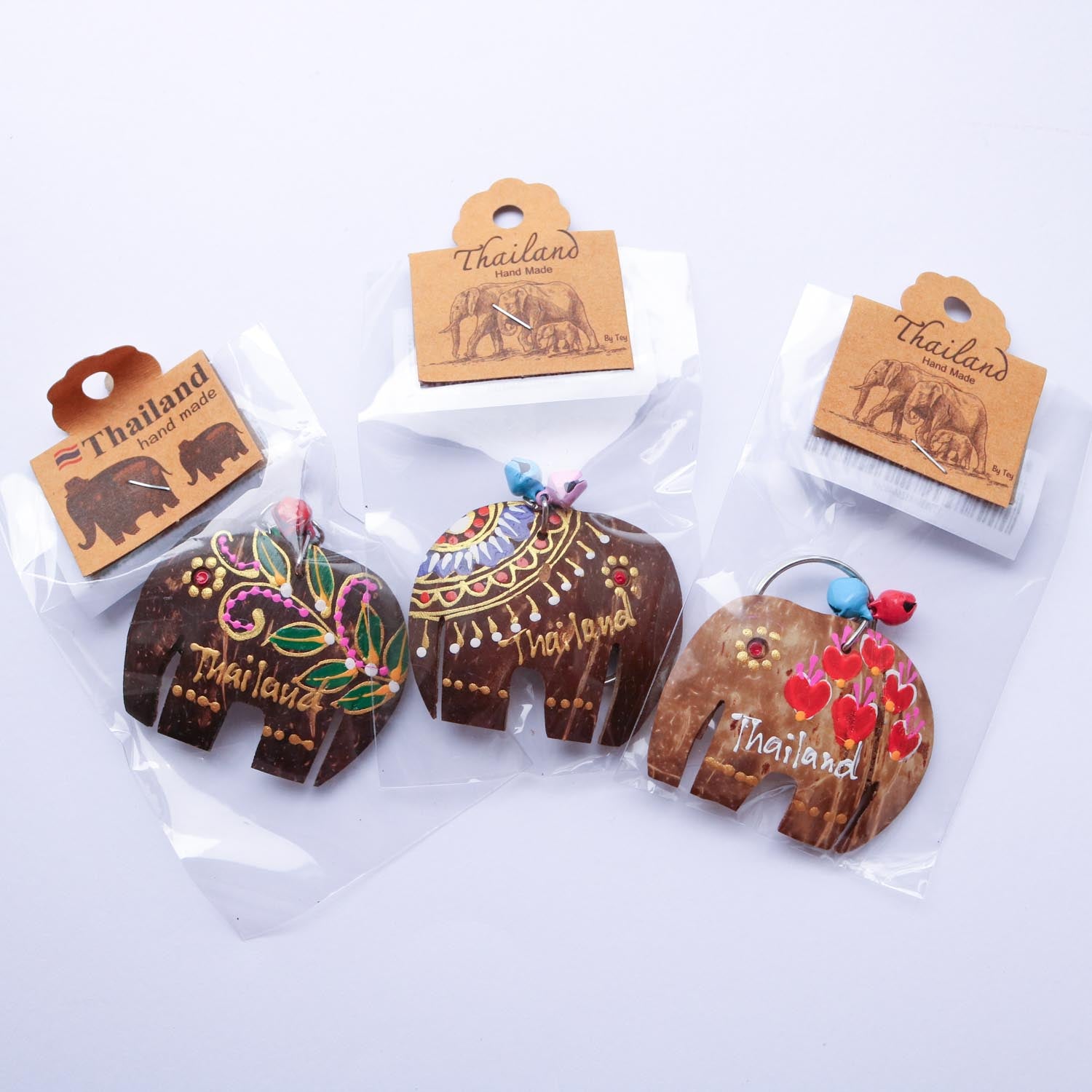 タイの豊かな自然が育んだココナッツの殻(シェル)を再利用して作られた、エコで愛らしいキーホルダーです。