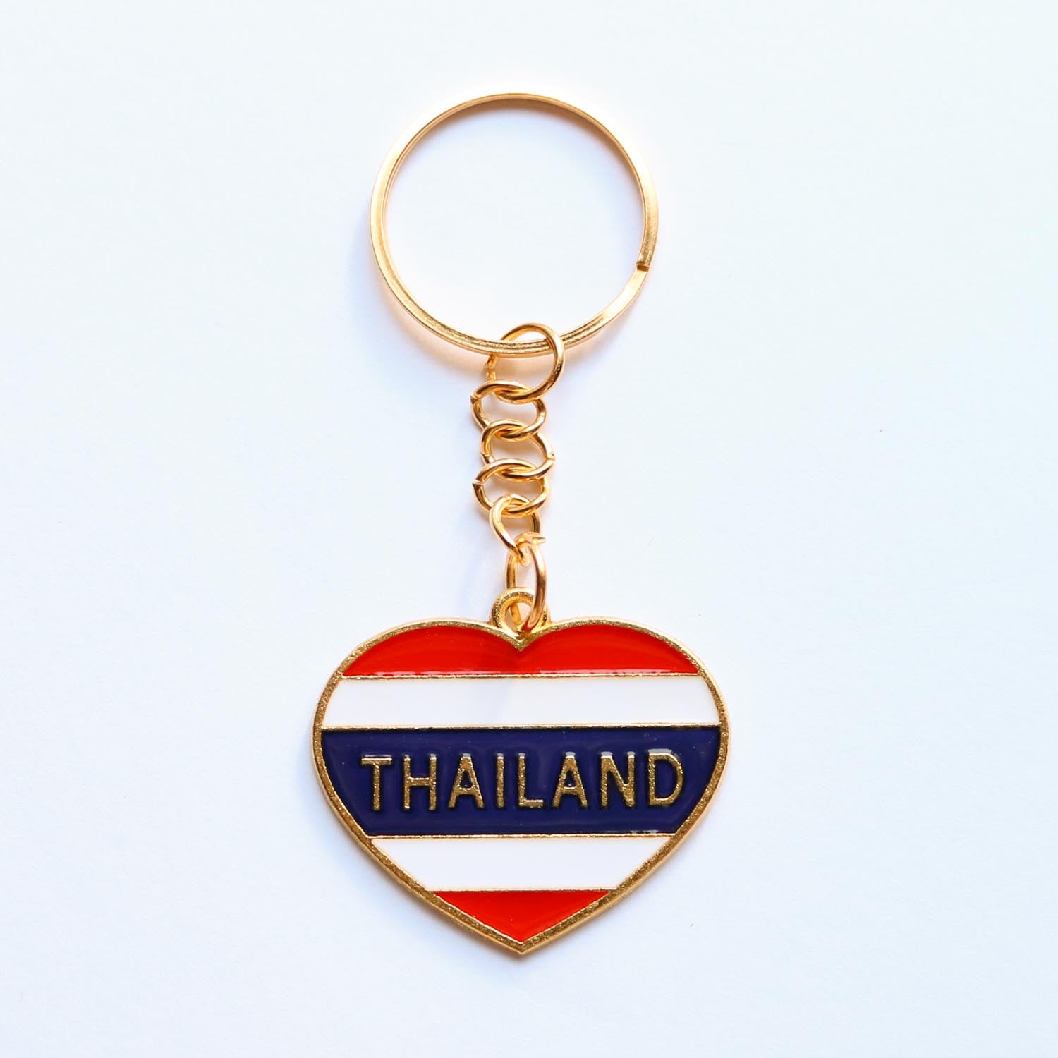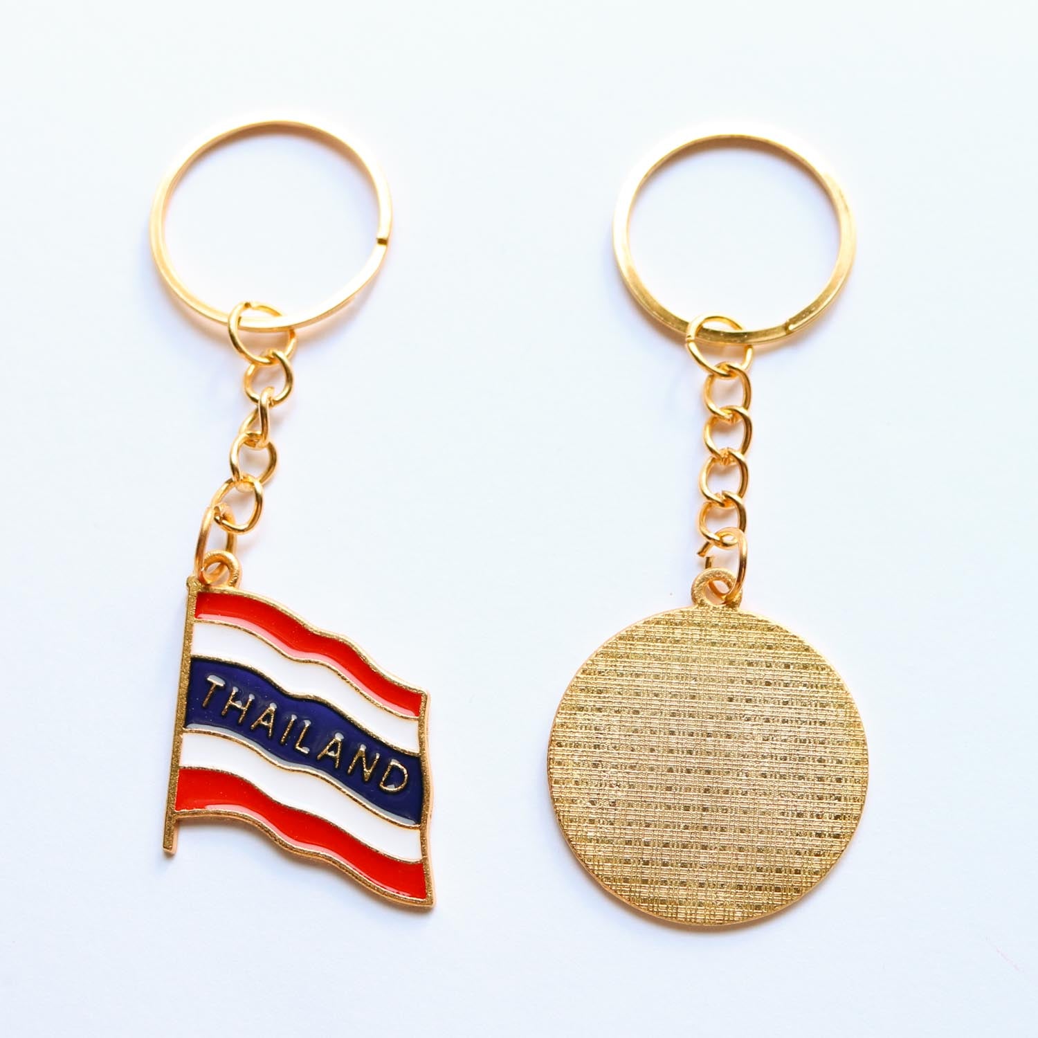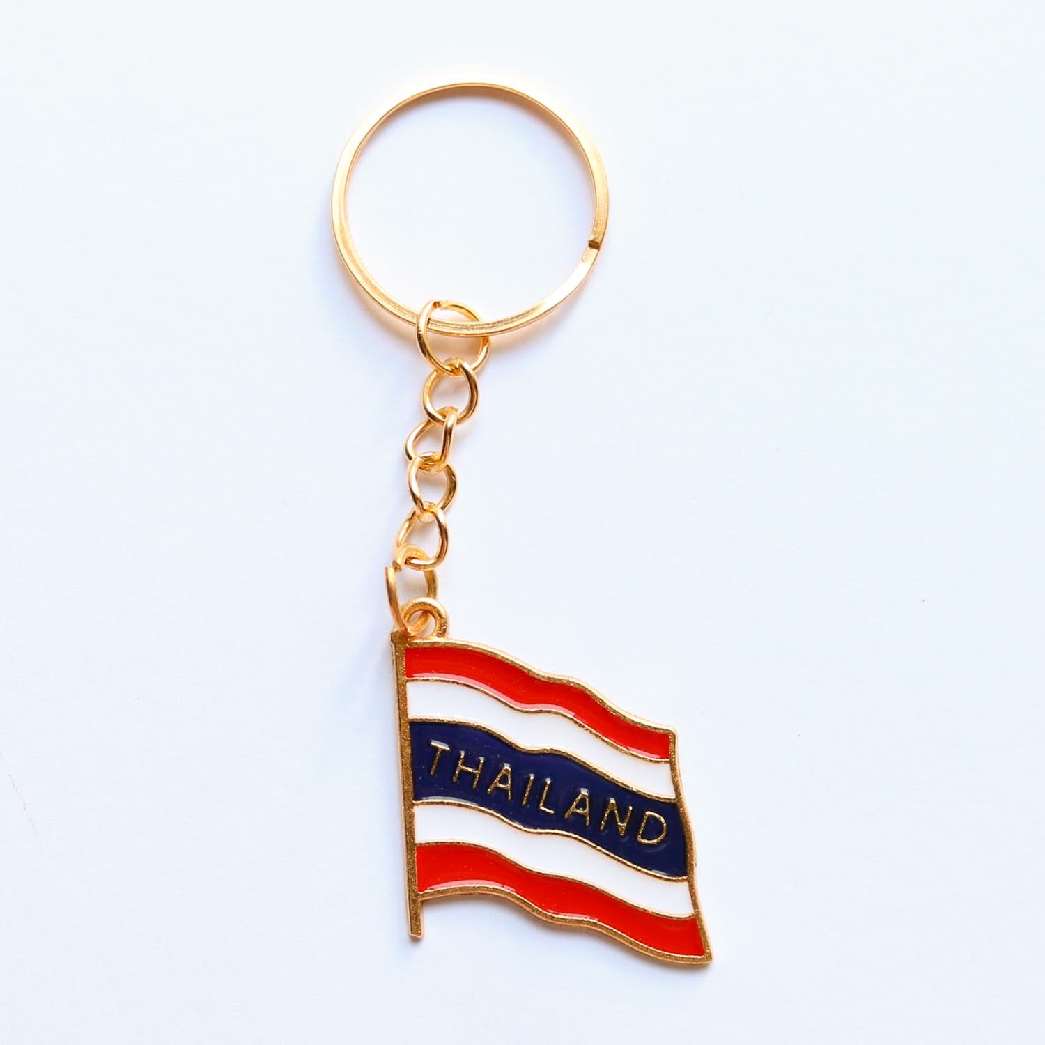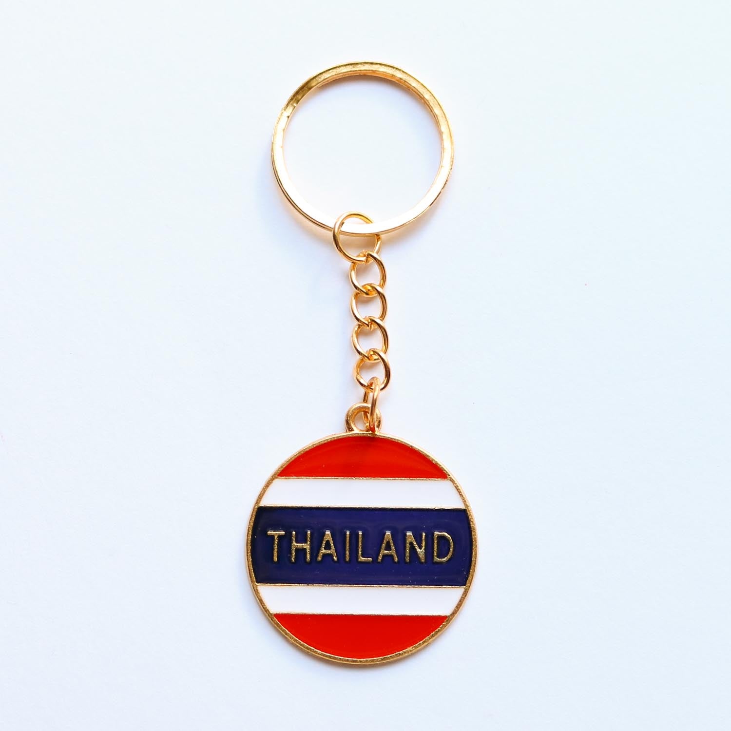タイ国旗の鮮やかなトリコロールカラーを、高級感のあるエナメル塗装で仕上げたキーホルダーです。シンプルながらもパッと目を引くデザインは、自分へのご褒美にはもちろん、タイ好きな友人へのプチギフトにも最適です。