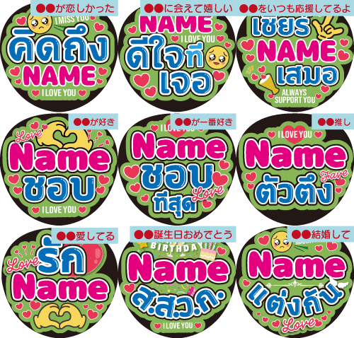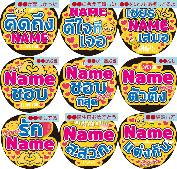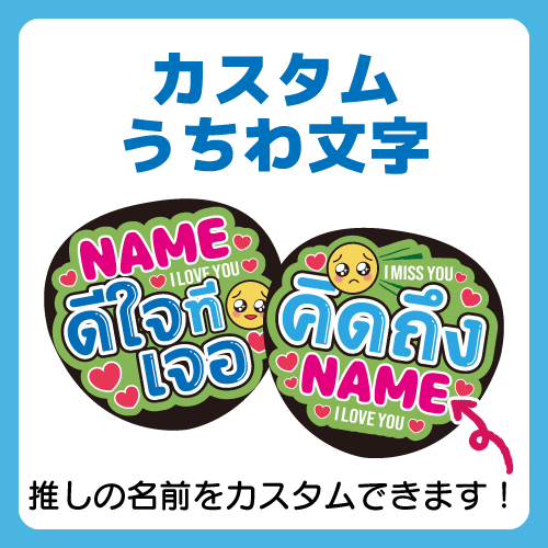 推しの名前を入れるだけ!うちわを1から考える時間は不要です。欲しいメッセージとカラーバリエーションを選択して、手軽にタイ語のうちわを手に入れられます!
