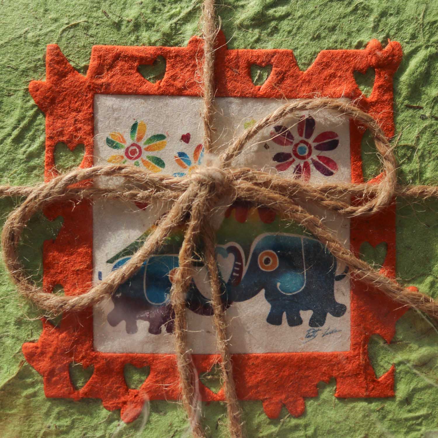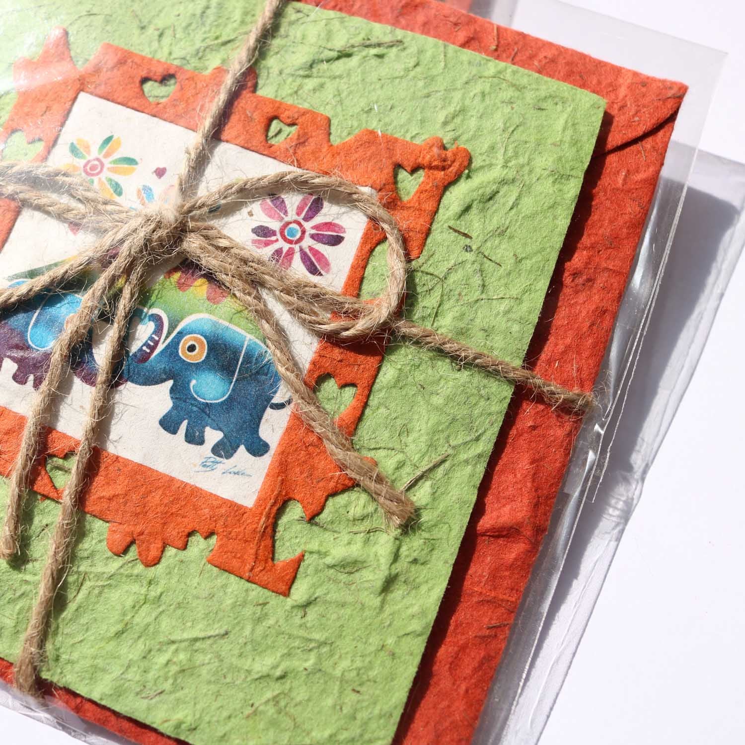 チェンマイの「ELEPHANT POOPOOPAPER Park™」で、象のうんちから抽出された植物繊維を使い、職人が一枚ずつ丁寧に漉き上げたハンドメイドカードです。