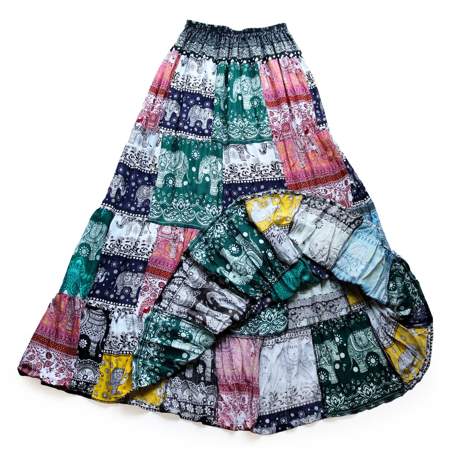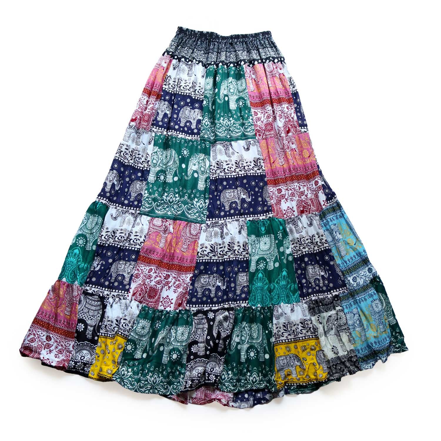 タイの色彩を一枚に凝縮。伝統的な象柄と花模様がダンスする、ボヘミアン・シックな主役級スカート。